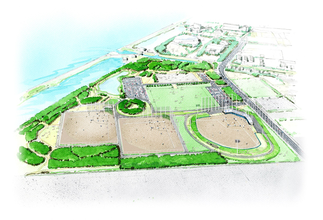 アリーナ事業に伴い廃止された旧豊橋球場の代わりとなる新球場の移設計画を巡っては、長坂市長就任によって同事業とともに一時中断された。市は今年9月に市民説明会を開いたほか、10月から11月にかけて防災の専門家らの意見を聞いた上で津波や液状化への懸念に対応可能だとして、11月に既存の基本設計と同じ総合スポーツ公園B地区に整備すると発表した。