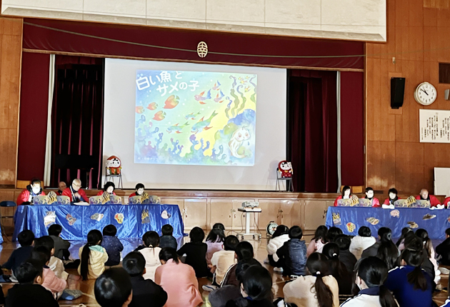 一宮南部小で行われた人権擁護委員による紙芝居(豊川市提供)