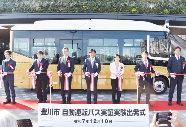 豊川市は10日、イオンモール豊川で初めての自動運転バスの実証実験の出発式を開いたが、接触事故が発生したため急きょ運休することに決めた。11日から26日までの16日間、イオンモールとJR豊川駅前を結ぶルートで運行する予定だった。