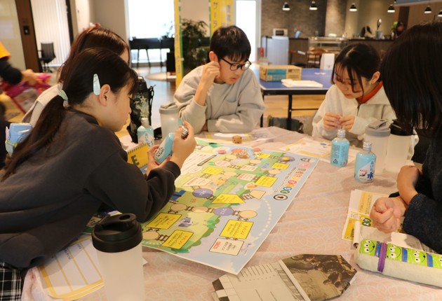 防災すごろくで身近な防災を考える参加者(emCAMPUS STUDIOで)