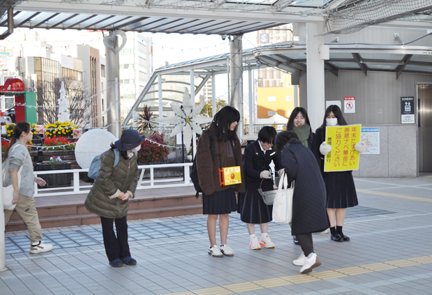 「年末たすけあい活動」の一環として、豊橋善意銀行は23日まで、豊橋駅前と駅前大通一帯で高校生が道ゆく人たちに「善意ナベ募金」を呼び掛けている。 初日の15日は、県立豊橋西高校の生徒8人が参加した。大きな鍋を掲げて路上に立ち、「恵まれない人...