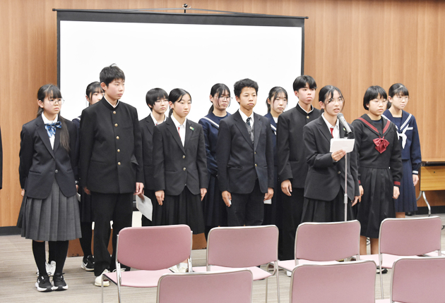 市立西部中3年の大柴妃希さんは米国の家庭では家事を分担すること、学校では個性や自主性を伸ばす教育課程になっていること、無人タクシーを見たことなどを踏まえ「言葉が伝わるうれしさを実感した。積極性や柔軟性が身に付き、とても成長して日本に帰ってこられた」と振り返った。