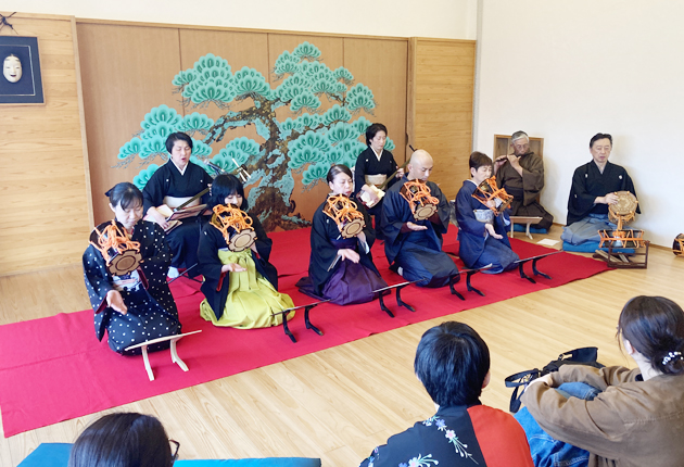 20日に稽古の成果を披露するコンサートが開催された。約50人の聴衆が集まり盛り上がった。3人の体験者は小鼓を使って、五穀豊穣(ほうじょう)を願う「雛鶴三番叟」を指導者とともに演奏した。体験者は「緊張したが、演奏できてよかった。聞いていただけてうれしい」と感想を述べた。オープニングアクトとして「三河童子」による三味線演奏も行われた。