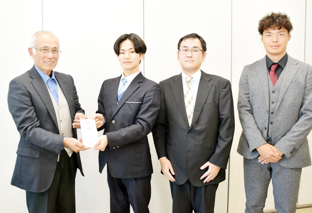 県立新城有教館高校3年生209人の代表生徒が22日、新城市東沖野のしんしろ福祉会館を訪れ、社会福祉協議会の森田尚登会長に「学櫻祭」模擬店の売上金5万3112円を寄付した。 代表は、前期生徒会長の市川珠瑳さん(18)。杉﨑南路教諭、酒向俊和...
