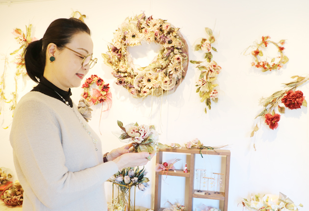 豊橋市の「アンティーク布花」のインストラクターとして活躍している来本幸江さん(54)の個展が、豊川市蔵子2丁目のカフェ&ギャラリー「カフェ グラデュアル」で開かれている。27日まで。 布花の魅力を凝縮したクリスマス飾り、お正月飾りなど約1...