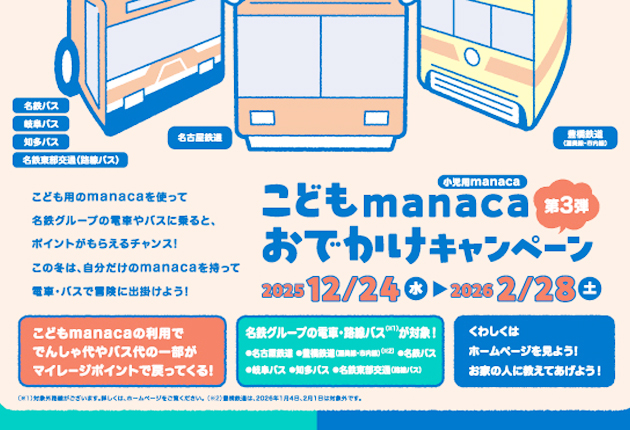 こどもmanaca キャンペーン第3弾/来年2月28日まで/豊鉄