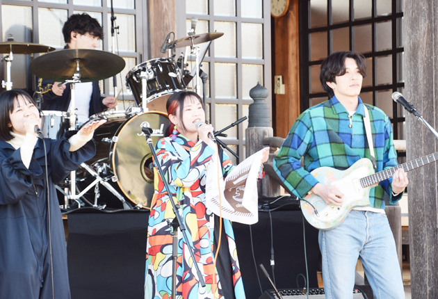 東三河県庁(愛知県東三河総局)主催の野外ライブ「ザ・ホームパーティ」が28日、「しんしろ軽トラ市」開催中の新城市中央通り商店街・亀姫通り沿いの大善寺で開かれた。 出演したのは、「cinnamons(シナモンズ)」と「HIKARU」。シナモ...