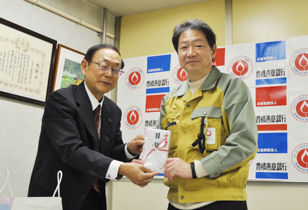 豊橋市の中部電力パワーグリッド豊橋支社がこのほど、年末たすけあい義援金品として1万695円と食品5点、雑貨1点、カレンダー・スケジュール帳多数を豊橋善意銀行へ寄付した。 同社の村田好章支社長が同行の中神真常務理事に目録を手渡した。 寄付金...