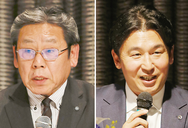 田内浩之湖西市長㊨と村上孝治東栄町長