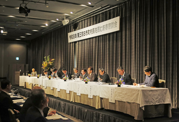 新年恒例「東三河8市町村長を囲む新春懇談会」は6日、豊橋市のホテルアークリッシュ豊橋で開かれた。地元自治体トップらが顔をそろえ、地域の将来像を展望した。