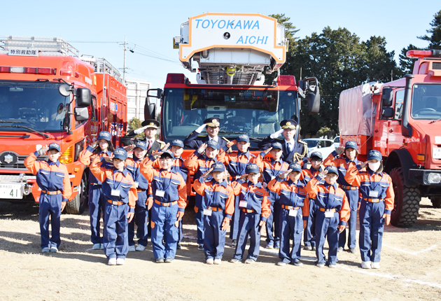 豊川市は10日、同市金屋西町の陸上自衛隊豊川駐屯地訓練場で消防出初め式を行った。
