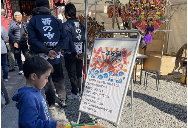 おみくじや縁起物が並んだ酉の市(砥鹿神社で)