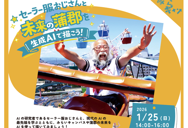 蒲郡市は25日午後2時から、市内元町の交流拠点「みらキャンベース(仮称)」でイベント「セーラー服おじさんと未来の蒲郡を生成AIで描こう!」を開く。参加無料。 生成AI(人工知能)の研究者「セーラー服おじさん」こと小林秀章さんとAIの最先端...