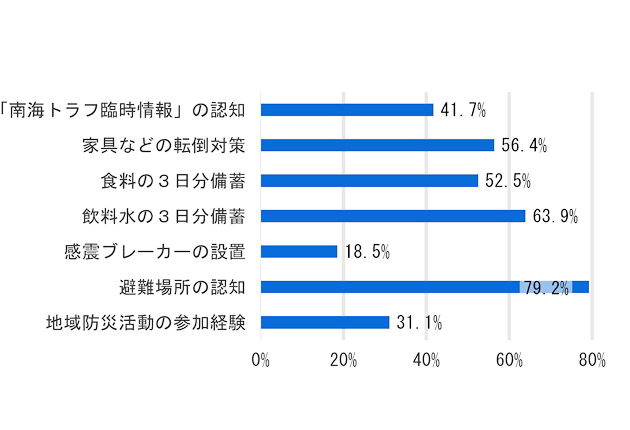 今回の調査で、気象庁が発表する「南海トラフ地震臨時情報」の認知度は41・7%となり、前回の23・1%から大幅に上昇。2024年に実際に臨時情報が発表されたことなどが、周知につながったとみられる。