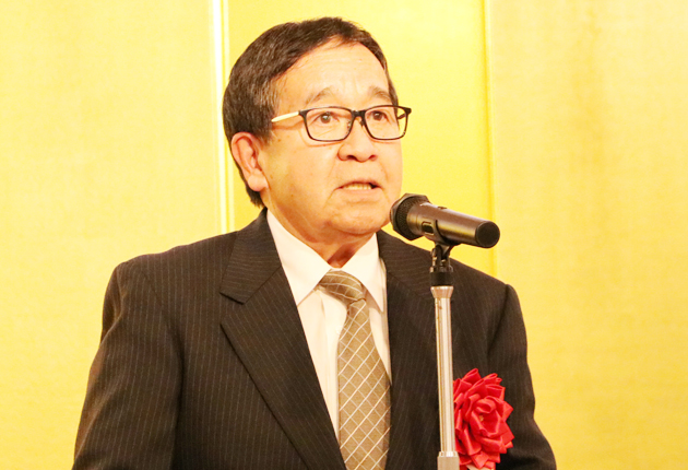 あいさつする今井会長 (ホテル明山荘で)