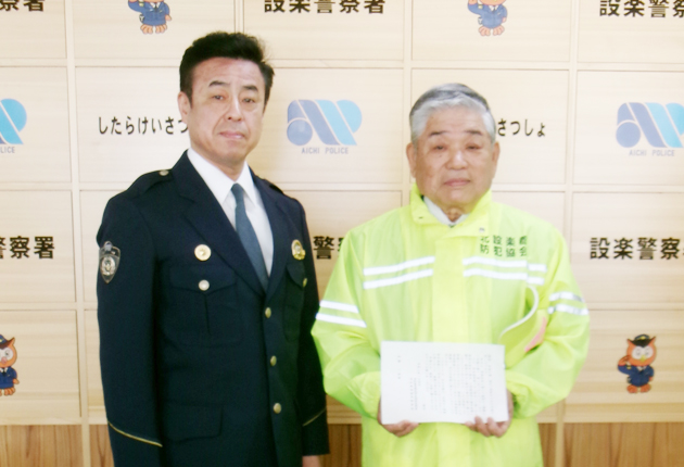 設楽署は19日、青色防犯パトロール隊「設楽セーフティボランティア」代表の加藤一敏(かずとし)さん(78)に同署で謝意を表明した。 原田裕司署長は、長年にわたる積極的な地域安全活動に感謝し、愛知県警察本部生活安全部長と署長連名の礼状と記念品...