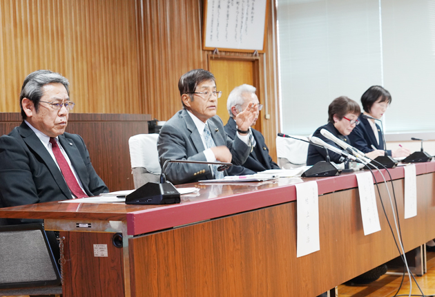 会見には村上孝治町長も同席し、「民主主義の根幹を揺るがす重大な問題だ」と頭を下げた。