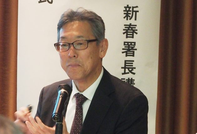 講演する小山署長(ホテルシーパレスリゾートで)