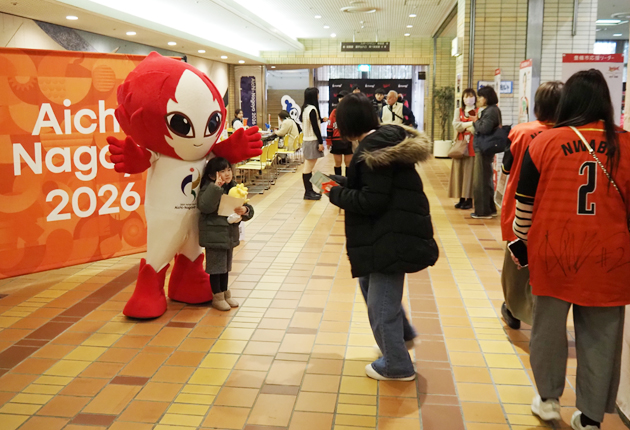 豊橋市に拠点を置く男子プロバスケットBリーグ・三遠ネオフェニックスのホームゲームが24日、豊橋市総合体育館で開催され、「豊橋DAY」の催しが行われた。 今年は、豊橋市が会場になるアジア大会の競技を紹介するブースが設けられ、大会のマスコット...