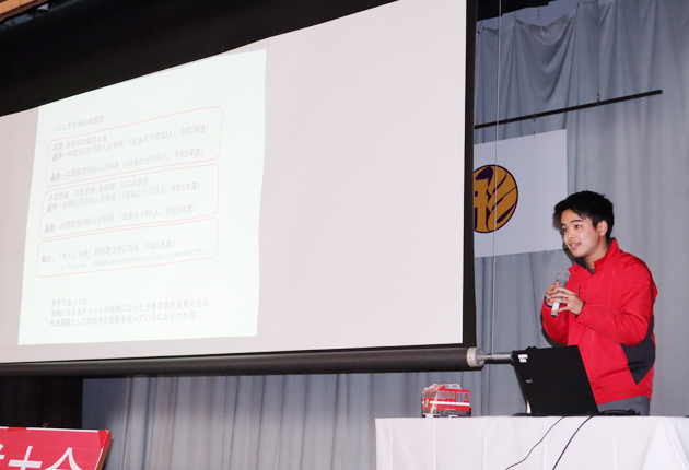 意見発表した愛知大地域政策学部(豊橋市)の学生グループREGO(レゴ)の木本健聖副代表と保坂佳孝さんは、沿線外の住民に利用を促すため、近隣市のイベントに参加するなど活動範囲を広げる方針を示した。「市外からも何度も乗りに来てもらう仕組み作りが必要だ」と呼びかけた。