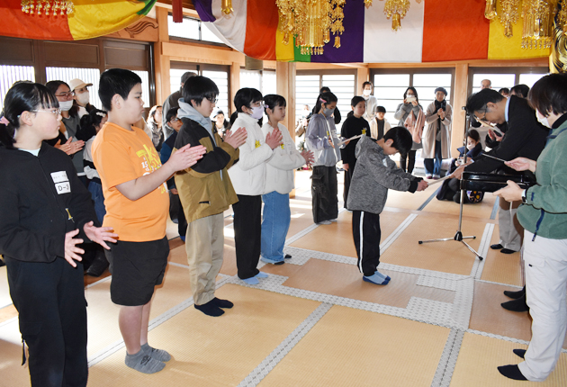 今年は桃色の札を使用し、子どもたちは最初に各組4人ずつで総当たりのリーグ戦に臨んだ後、各組上位2人が決勝トーナメントへ進出。奈良時代の建立とされる三河国分尼寺跡史跡公園の隣にある寺で、集中力と反射神経を発揮した。