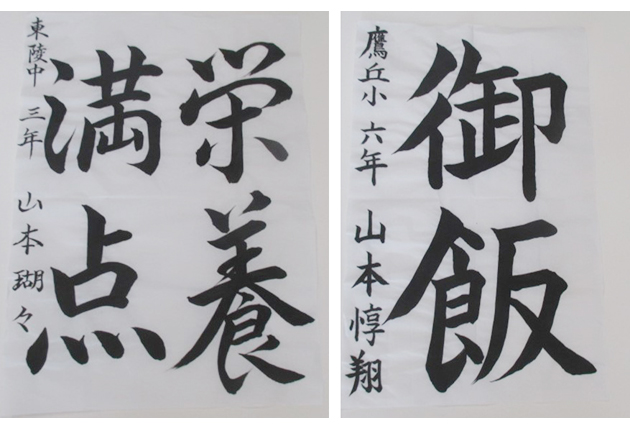 東陵中3年山本瑚々さんの作品㊧と、鷹丘小6年山本惇翔さんの作品(同)