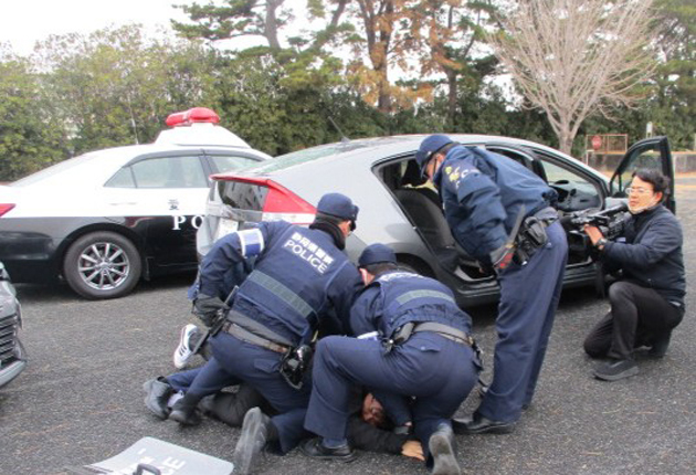 訓練で犯人グループを逮捕する様子(豊橋署提供)