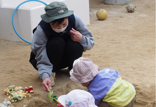 子どもと遊ぶ参加者(豊橋市立つつじが丘保育園で)