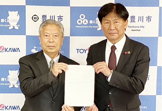 竹本市長㊨へ答申した今泉会長(豊川市提供)