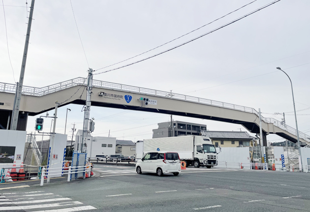 豊川市の名鉄国府駅前の国道1号交差点に、地元住民らの悲願だった横断歩道橋が設置された。夏ごろの供用開始が予定されており、危険と隣り合わせだった子どもたちの通学環境が大幅に改善される。