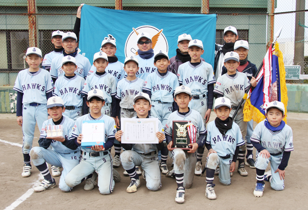 第47回豊橋市スポーツ少年団新春トーナメント軟式野球大会は7日、豊橋市東田球場でBブロックの優勝決定戦が行われ、鷹丘ホークスが4―1で牛川パイレーツに快勝、優勝を決めた。