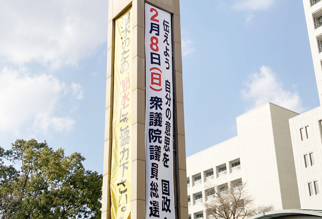 衆院選の投票日を知らせる懸垂幕(豊橋市役所で)