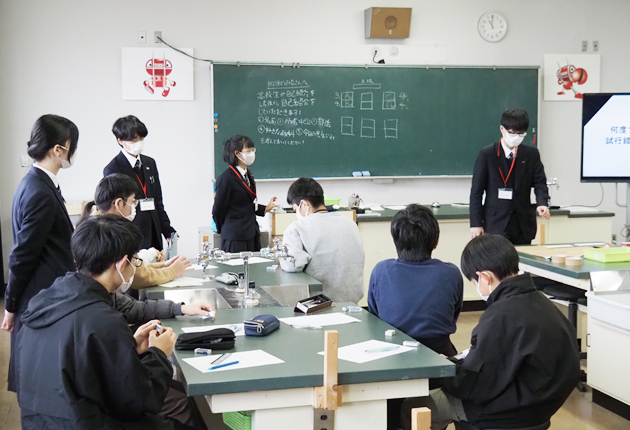 スーパーサイエンスハイスクール(SSH)の指定を受ける県立時習館高校の生徒が講師となり、中学生に科学の楽しさを教える「探求道場」が7日、豊橋市大岩町の市視聴覚教育センターで開催された。東三河の中学生らが参加した。 机の上で消しゴムをはじい...