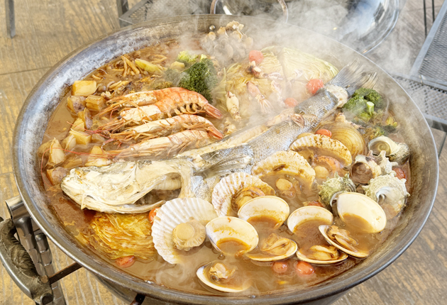 貝類やエビと一緒に煮込むことでうま味が染み出し、濃厚で複雑な味わいのスープが完成する。そこにご飯とチーズを投入すればチーズリゾットになり、最後の一滴まで味わうことができる。