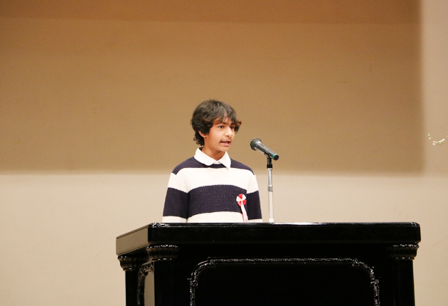 小中学生の部は、豊川市代田小学校6年のアコンド アフナンさん(バングラデシュ)が最優秀賞を受賞。「思ってくれている人達のために」と題してスピーチしたアコンドさんは、友だちが増えることでみんなが自分のことを思ってくれていることに気づいたと述べ、「国籍や肌の色が違ってもありのままで生きていこうと思う」と力強く語った。アコンドさんのスピーチは、特別審査員のオーレリウス・ジーカス駐日リトアニア共和国特命全権大使の特別賞にも選ばれた。
