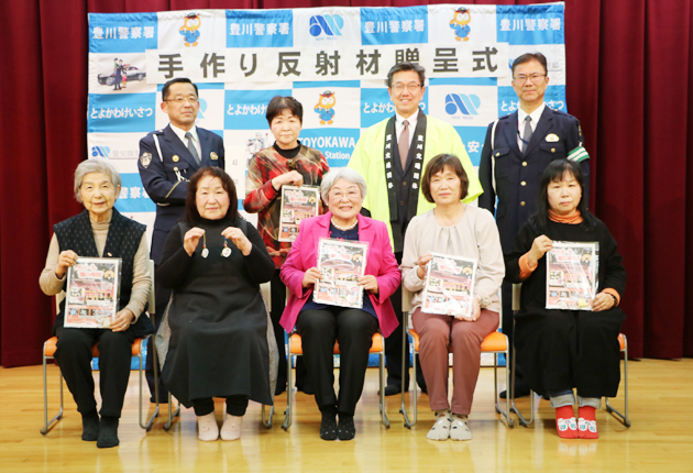 豊川市一宮地区の手芸ボランティア手あそびサークル 「やまんば」(美馬ゆきえ代表)は10日、交通安全の気持ちを込めて手作りした反射材マスコット100個を、豊川交通安全協会に寄贈した。 この日の寄贈式は市内上長山町の健康福祉センター「いかまい...