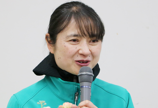 講演する南極シェフ、渡貫淳子さん(豊川商工会議所で)