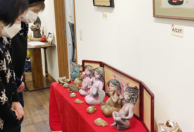 かわいい陶人形や木目込み人形を展示(栄知村で)