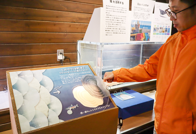 また、触れられるサメの皮の標本や、サケのうろこのしま模様から年齢を判別できる模型も関心を呼んでいる。