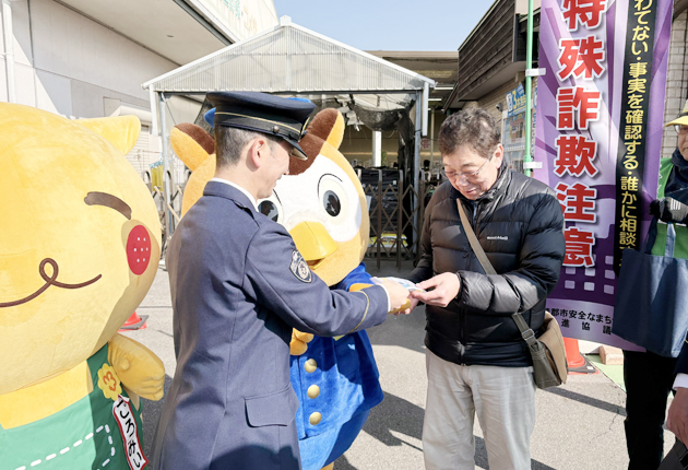 特殊詐欺の被害を防ごうと、蒲郡署は13日、蒲郡市宮成町のJA直売所「グリーンセンター蒲郡」で啓発活動を繰り広げた。バレンタインデーにちなんでチョコレートを配り、「チョコっと待って」を合言葉に注意を呼びかけた。 署員やJA職員らが参加。来店...