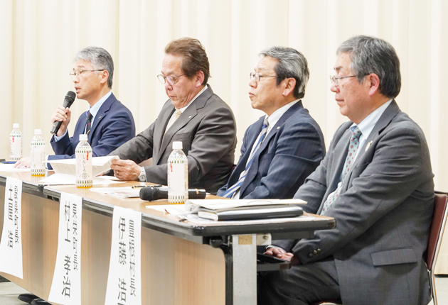 一般社団法人奥三河ビジョンフォーラムの新春懇談会が13日、新城市商工会館であり、地域の首長4人がパネルディスカッションに臨んだ。テーマは「攻める奥三河」で、それぞれ「関係人口を地域の活力にする」(下江洋行新城市長)、「山村留学制度を研究する」(村上孝治東栄町長)といった展望を語った。