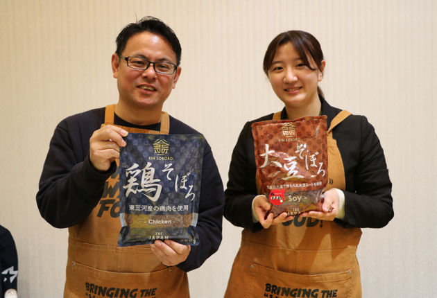種類は、東三河の豊かな自然で育った鶏肉を使用した「鶏そぼろ」と、国産大豆ミートを使用した「大豆そぼろ」の2種類。素材のうま味と食感を最大限に引き出している。