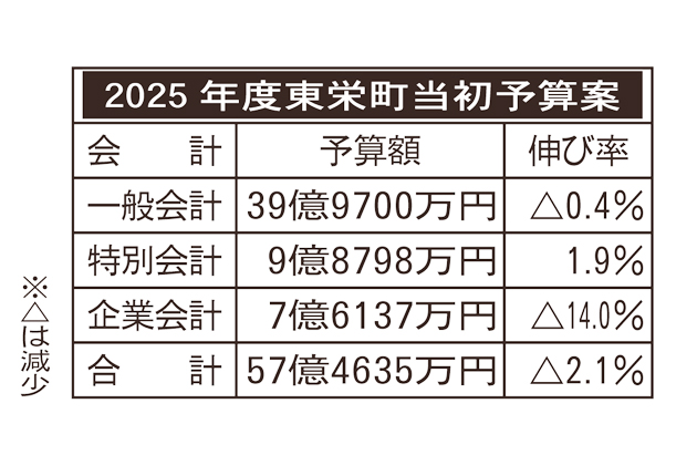東栄町は27日、2026年度当初予算案を発表した。一般会計は前年度当初比0・4%減の39億9700万円。役場の新庁舎整備や観光資源充実に向けた準備を始める一方で、既存事業の縮小・廃止や事務の整理に努め、2年連続でマイナスとなった。