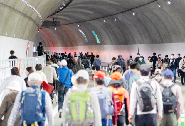 この日は、長さ841メートルある「三遠三輪トンネル」が開放され、人々は反対側の東栄ICまでウオーキングを楽しんだ。