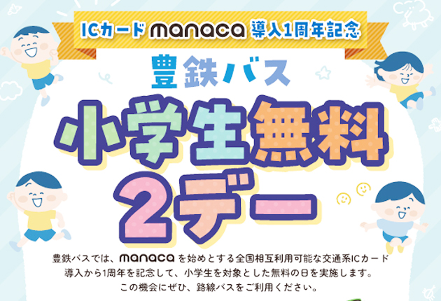 豊鉄バス(豊橋市植田町、岩ヶ谷光晴取締役社長)は、3月15日でmanacaをなどの交通系ICカード導入から1年を迎える。これを記念し、子どもたちをはじめ地域住民にバスに楽しんでもらう記念企画を実施する。 「豊鉄バス小学生無料2デー」として...