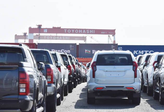 三河港に並ぶ国産自動車(豊橋市神野西町で)