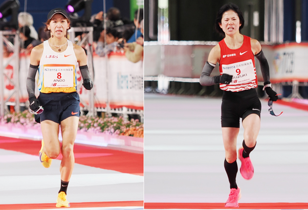 23位でフィニッシュする鈴木㊨と17位でレースを終えた安藤(バンテリンドームナゴヤで)