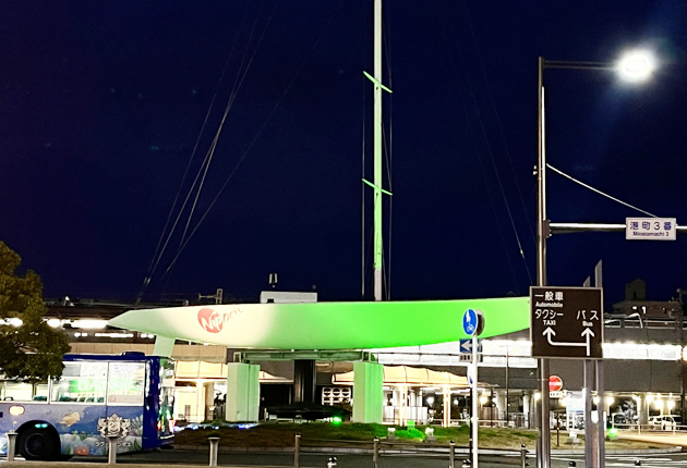 ニッポンチャレンジ号、蒲郡駅前でグリーン点灯中