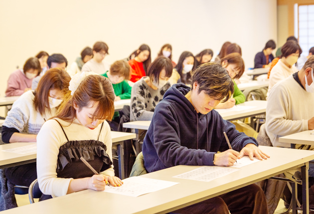 写経体験に臨む参加者ら(豊川稲荷で、提供)