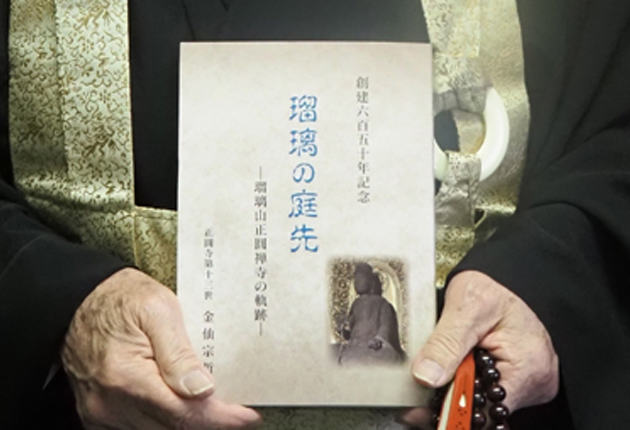 臨済宗の寺として創建してから650年を記念し、豊橋市牛川町の正圓寺の金仙宗哲・先代住職が、書籍「瑠璃の庭先瑠璃山正圓禅寺の軌跡」を出版した。9日、東海日日新聞社を訪れ、出版報告した。